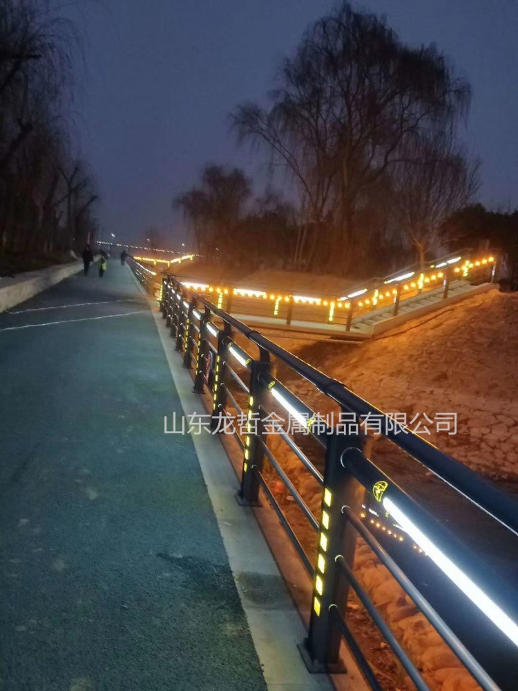燈光護欄是結合了城市設施實用功能和藝術的可觀賞功能為一體的成功產品,亦可結合地方文化與特色于一體,實現燈光與護欄的完美結合。解決了燈具的隱藏問題,立柱和橫梁上設計的燈光,光度柔和,有冷暖色可選,安裝方便,對人行道照起到很好的輔助作用,用在河道不僅對游人起到了安全警戒和引導功能,外側燈光剛能更好對周圍景色加以點綴!導功能,外側燈光剛能更好對周圍景色加以點綴。